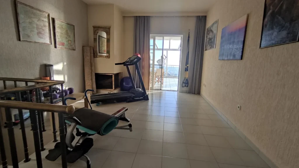 As you approach the villa, you are welcomed by a beautifully landscaped garden filled with Mediterranean plants, palm trees, and lush greenery that create a peaceful and private oasis. The highlight of the outdoor area is a stunning private swimming pool surrounded by a spacious sun terrace.