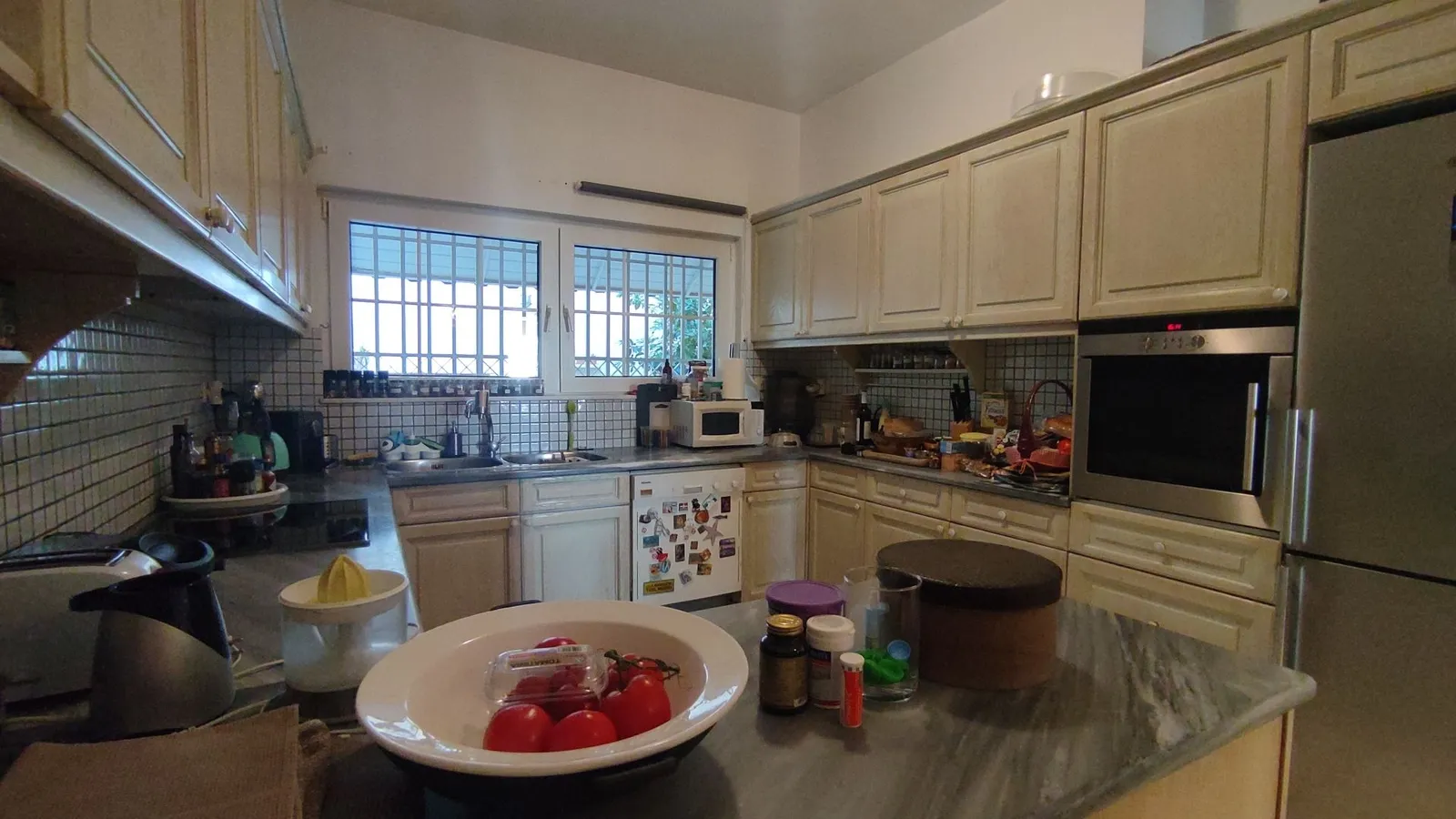 The poolside area is designed for relaxation, featuring comfortable loungers, shaded seating, and plenty of space to enjoy the Mediterranean climate year-round. The garden also includes several outdoor seating areas and a barbecue zone, making it ideal for entertaining guests or enjoying al fresco dining with family and friends.