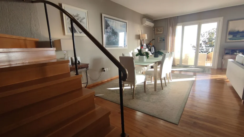 Upon entering the villa, you are greeted by a bright and spacious open-concept living area designed with a modern and minimalist aesthetic. Large windows flood the interior with natural light, creating a warm and inviting atmosphere.